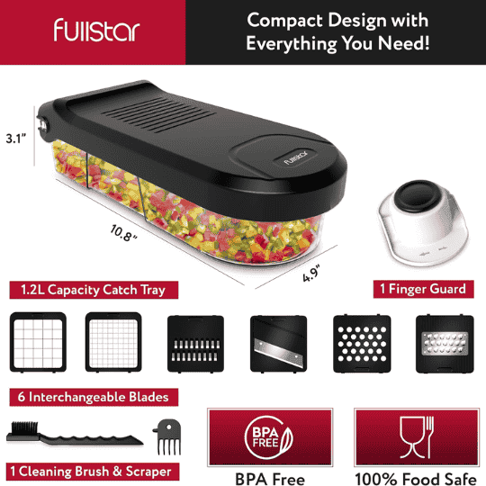 I’m not one for needless kitchen gadgets so I bought this after a lot of hesitation based on the recommendations of several “influencers” and I am very happy so far with it. It makes chopping and slicing vegetables so quick and easy – especially handy for onions which I find such a chore. The blades are very sharp but I like that it comes with a finger guard so I don’t have to wear a glove when I’m using it. Comes with tools to make cleaning easy.